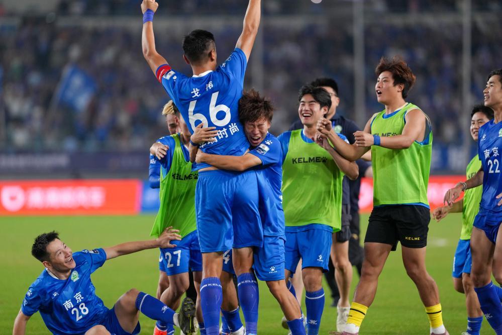 新华网南京10月8日电(记者王恒智)江苏省城市足球联赛(简称“苏超”)四分之一决赛8日结束,南通、南京、无锡、泰州晋级半决赛。根据赛制,“苏超”常规赛前八名球队将晋级决赛,南通、南京、徐州、盐城、无锡、泰州、连云港、淮安球队晋级八强。最后阶段以一场比赛决定胜负,常规赛第一名的球队将拥有主场优势。四场四分之一决赛分别安排在10月4日、5日、7日和8日国庆节和中秋节期间进行。 10月4日,南京队球员赛后互相拥抱庆祝胜利。当日,在南京举行的2025济城市足球联赛(简称“苏超联赛”)四分之一决赛中,贾南京队常规时间主场1-1战平连云港队。点球大战过后,南京队以总比分5-3击败连云港队,晋级半决赛。新华社 李波 摄 当“苏超”恰逢国庆、中秋假期,人们的观赛热情高涨。四场比赛的中奖率均低于7%。其中胜率最低的是南通队与淮安队的交锋,胜率仅为3.3%。 《第二直播》观赛点遍布八个城市,商业场所众多,吸引了大量市民和游客观看比赛。中秋节前的前两场四分之一决赛均以点球决胜负,比分均为5-3。顽强的连云港队在加时赛赢得点球,主场1-1战平南京队,但在点球大战中2-4落败。常规时间内徐州队与泰州队也打成1-1平。点球大战中,泰州队连进四球,以4-2击败排名靠前的球队。这支以中超球队长春亚泰青训队为蓝本的球队将在半决赛中作为客队对阵南京队。值得注意的是,南京队与连云港队的比赛再次刷新了“苏超”的上座人数纪录。当日,南京奥体中心有61355名观众观看了比赛。中秋节期间晋级的两支球队大比分获胜。常规赛保持不败的南通队在半决赛中以5-0获胜。常规赛期间,与南通队战平,而对手淮安队虽然结束了连胜,但未能创造奇迹。无锡队客场表现出色,击败盐城队g队3-0,也完成了“低比高”的比赛。这是无锡队常规赛后的第二场胜利。半决赛他们将对阵南通队。根据赛程安排,两场半决赛将于10月18日和19日进行,决赛将于11月1日在南京奥体中心体育场举行。